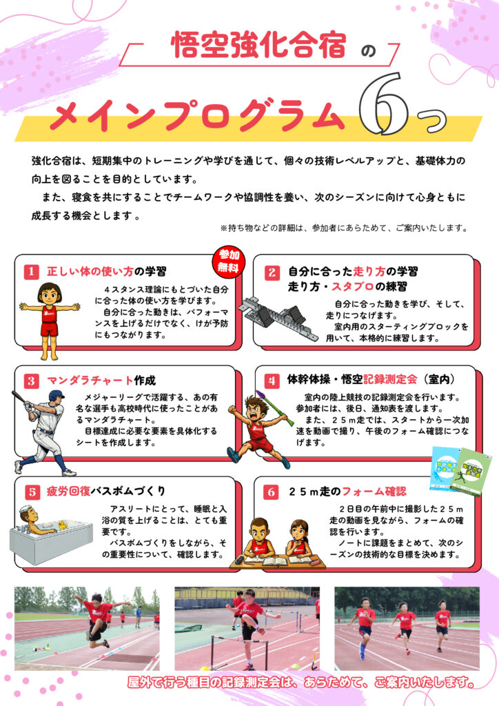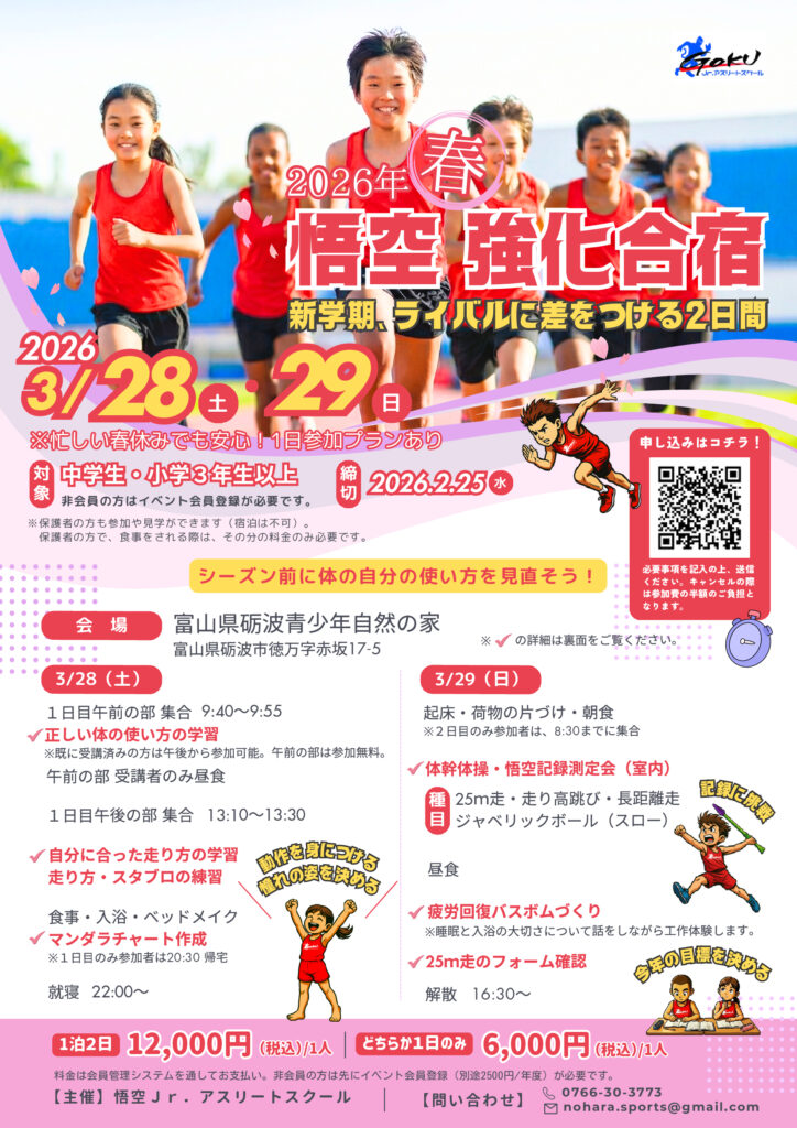 そんな思いに応えるため、2026年3月28日(土)〜29日(日) の2日間、「陸上競技」に特化した春の強化合宿を開催します!