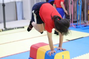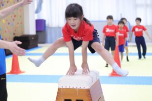 • 開脚跳び・閉脚跳び・台上前転など、基本技の習得