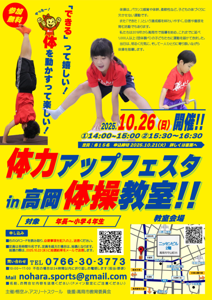 今回は、高岡市で2025.10.26(日)に開催する体力アップフェスタについて、お知らせします📢