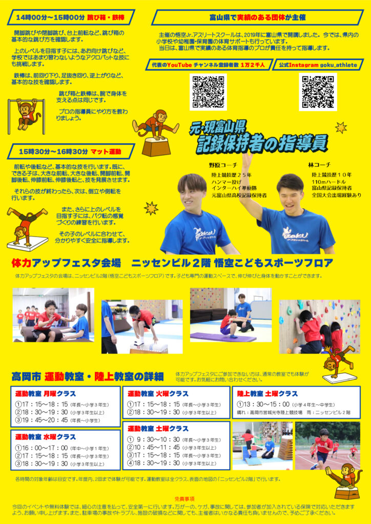 悟空Jr.アスリートスクールは、2019年に富山県で開講し、幼稚園・保育園・小学校への体育サポートを展開。