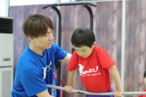 • 鉄棒では前回り下り・足抜き回り・逆上がりを丁寧にサポート